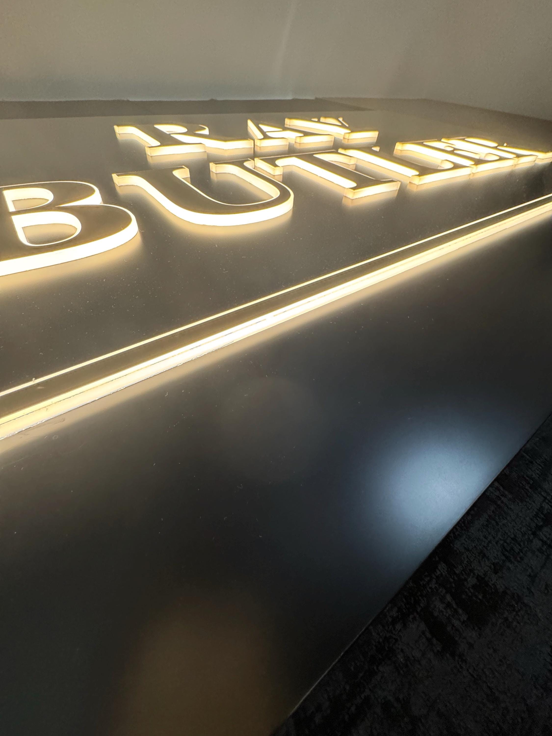 Elevate your brand with custom 3D halo-lit metal letters — individually crafted and mounted directly to your wall for a premium floating effect.